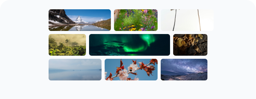 This is for those who want to create a good-looking gallery without touching too many settings. You only have to specify the gallery’s height, and our algorithm will intelligently arrange images within the given space. Randomly arrange pictures on each page load. We have that as well.