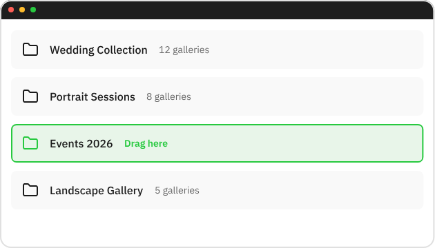 Group multiple galleries into organized albums with drag-and-drop simplicity.