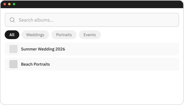 Let visitors filter and search through albums to find exactly what they’re looking for.