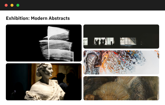 Curate exhibition collections and showcase artwork in beautifully organized digital albums.
