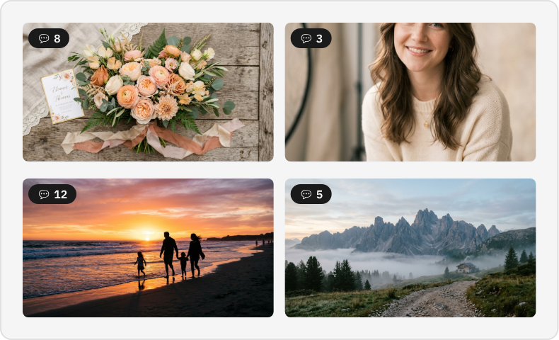 Show comment count badges on gallery thumbnails. Visitors instantly see which images are sparking the most conversation.