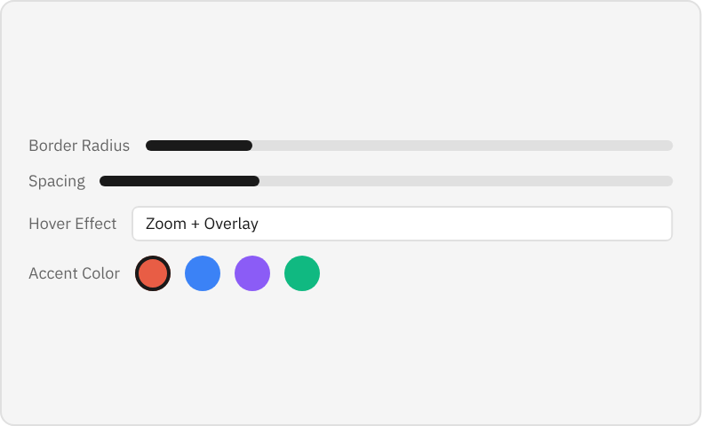 Customize colors, borders, hover effects, and spacing to match your website’s brand. Your Instagram feed, your design rules.