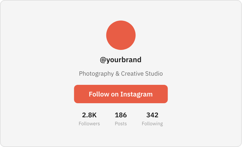 Add a customizable Follow button to your feed header. Drive Instagram followers directly from your WordPress site.