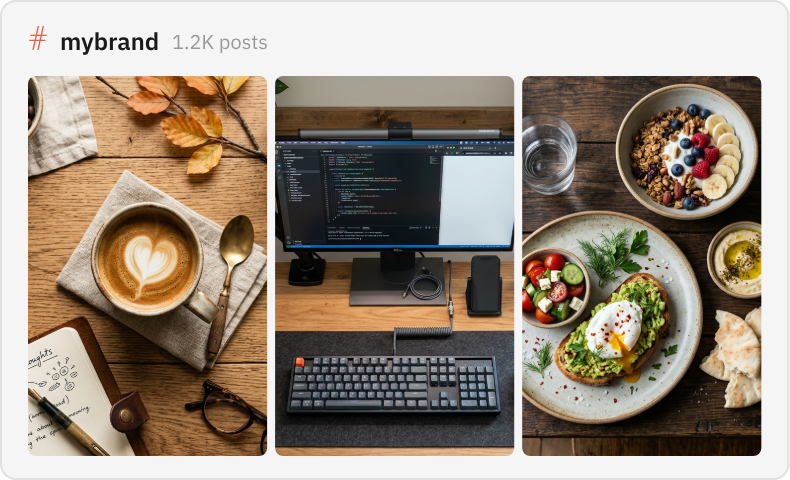 Pull in content from any public hashtag. Perfect for UGC campaigns, events, or curating community content on your site.