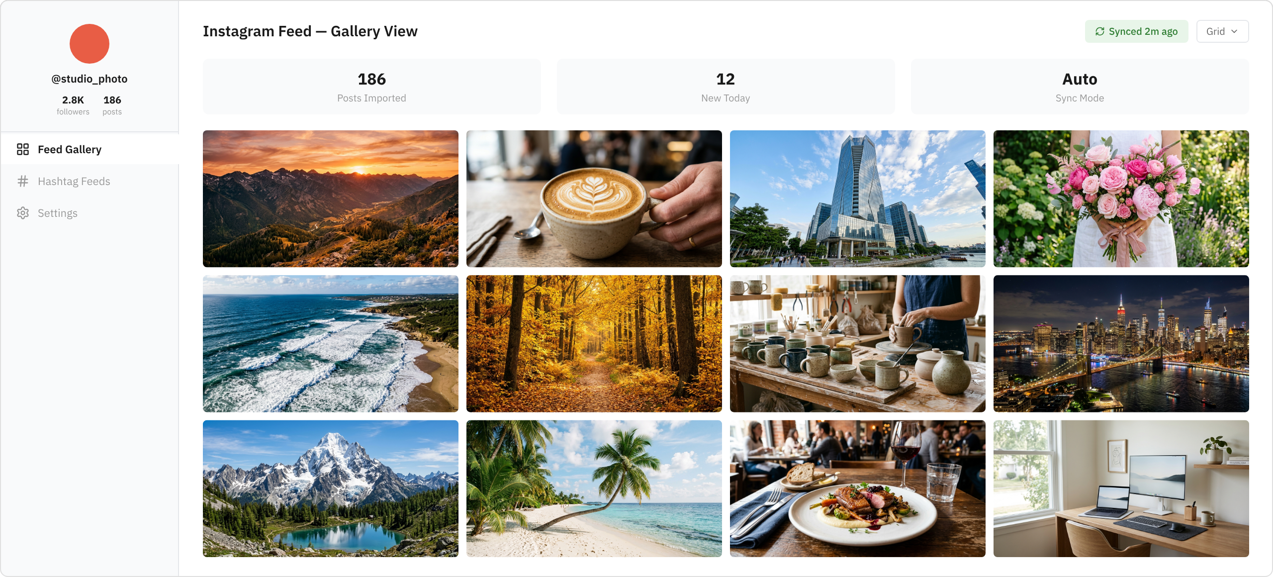 Automatically import new Instagram posts into your WordPress galleries. Set it and forget it — your site stays fresh without lifting a finger.