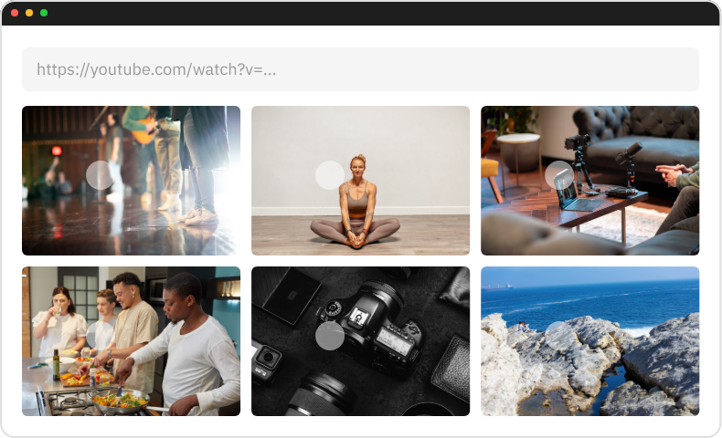 Auto-generated thumbnails from any video source. Customize with your own images or let Modula pick the perfect frame.