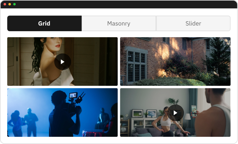 Professional gallery layouts that make your videos shine. Designed to impress from day one.
