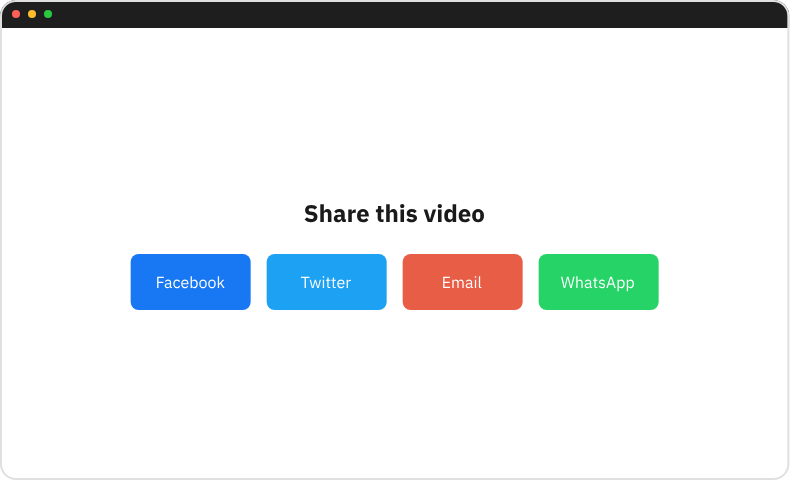 Built-in share buttons for every video. Let visitors spread your content across Facebook, Twitter, and more with one click.