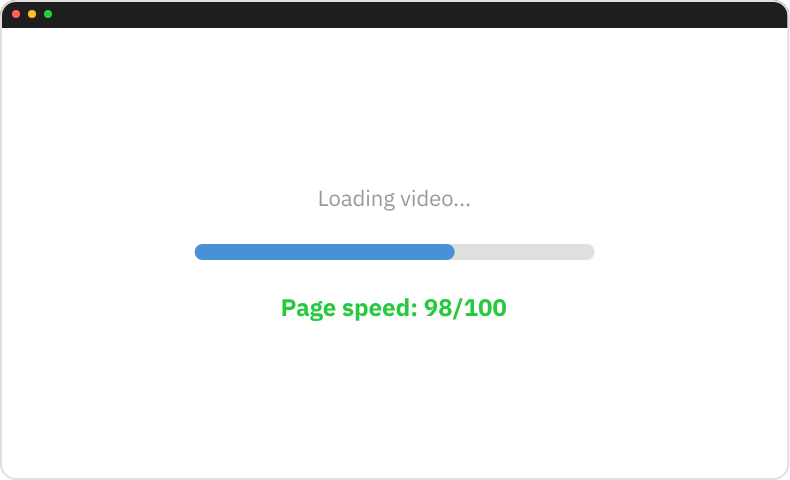 Videos load only when visitors scroll to them. Dramatically faster page speeds and better Core Web Vitals scores.