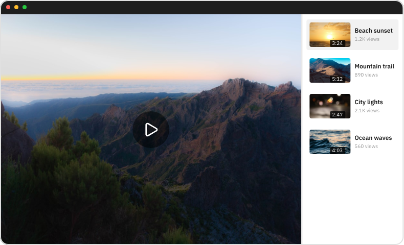 Upload and showcase your own video files directly. Full control over your content with no third-party dependencies or branding.